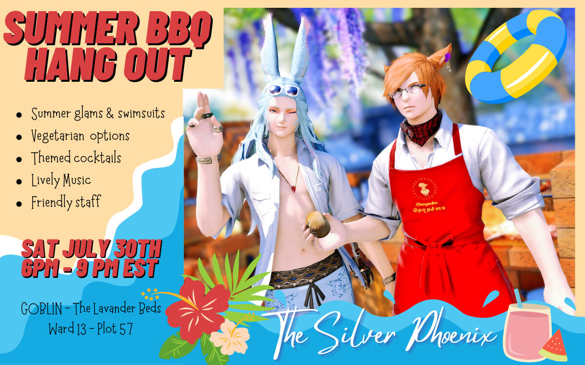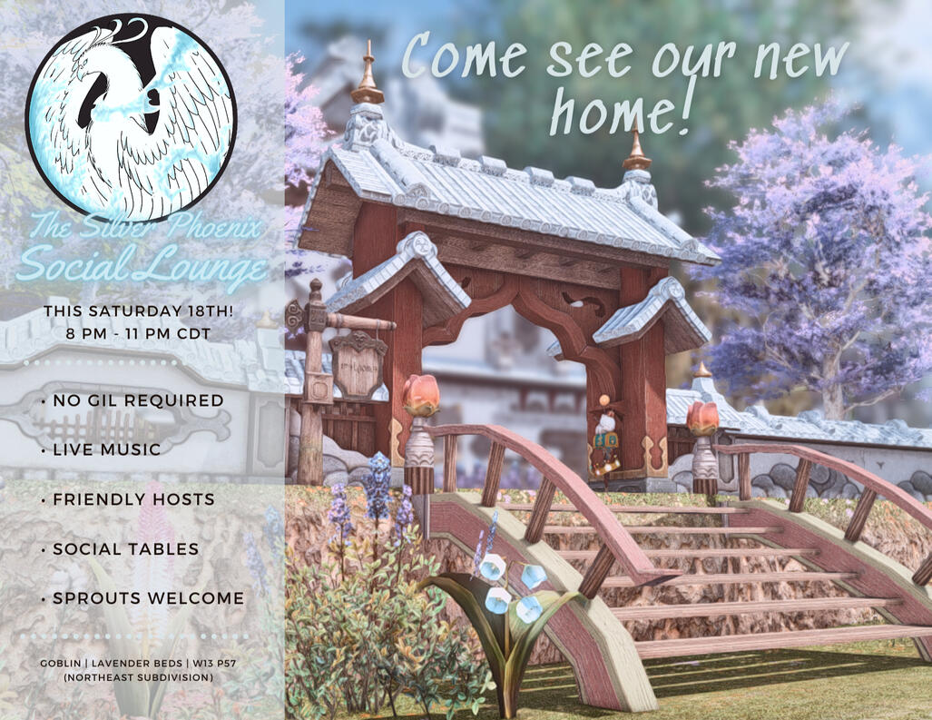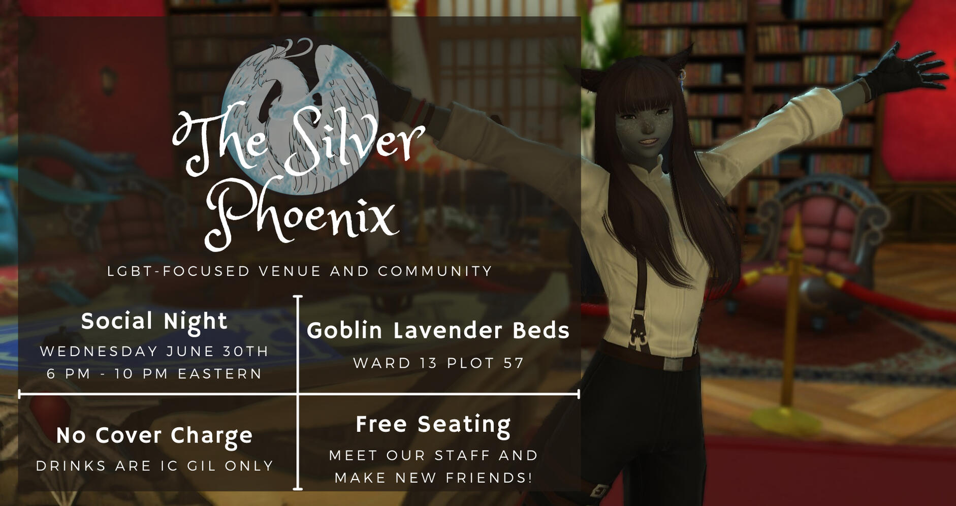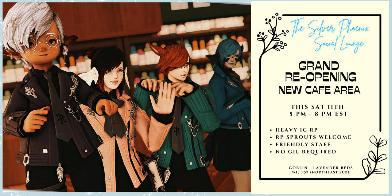As you go on with your normal day in New Gridania, you feel something being placed on your hands. It's a flyer. A redhead highlander has given it to you, albeit a bit forcefully, as she smiles brightly."The Silver Phoenix is open this Saturday!" she says with an animated tone. "Bring all your queer little friends, and check out our venue's new look!"She does not wait for you to reply before she skips away, ready to jump another innocent passerby with her flyers.